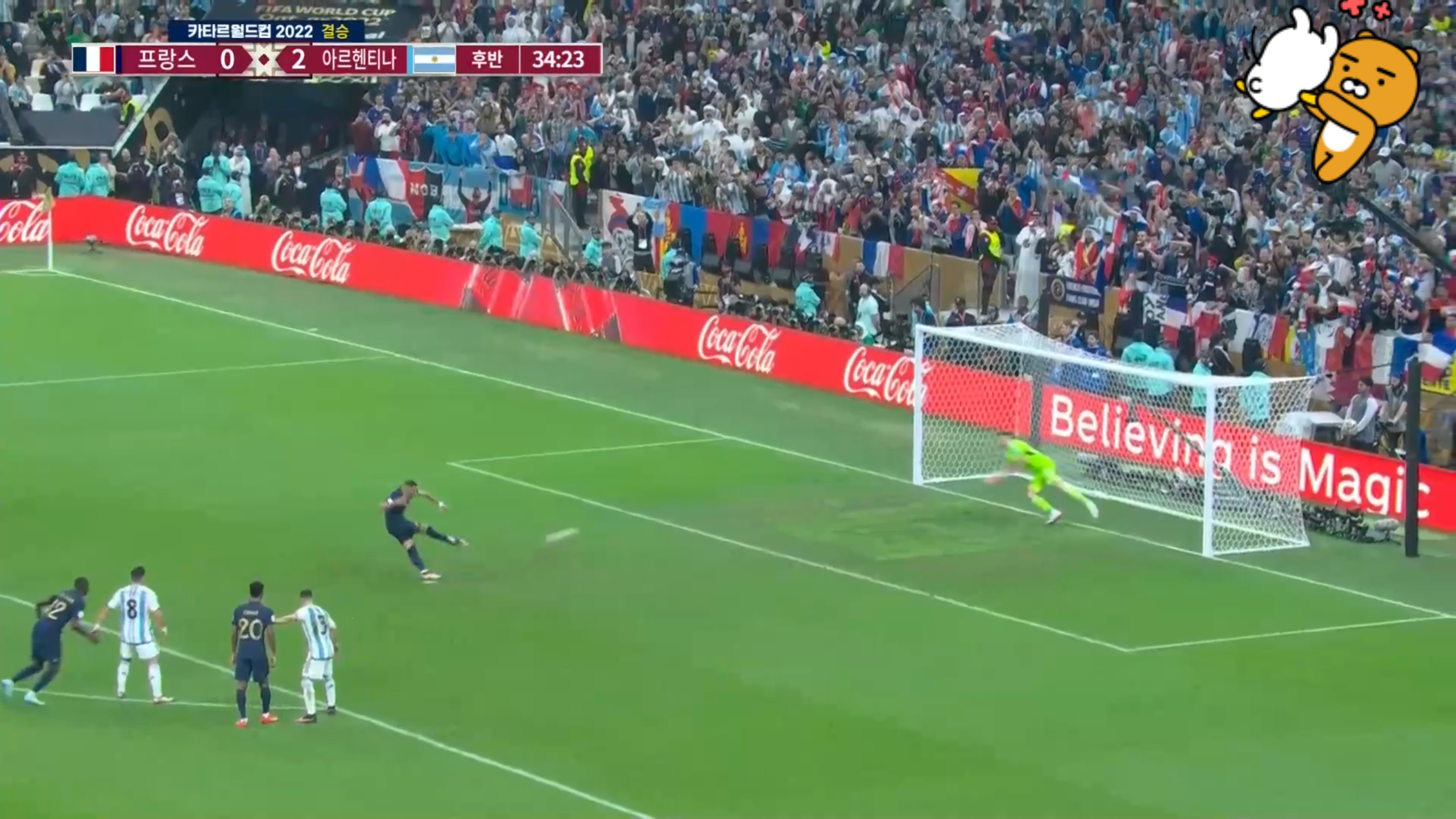 소중하게 얻은 페널티킥을 프랑스의 ACE 음바페가 성공시키고 추격을 시작합니다!!